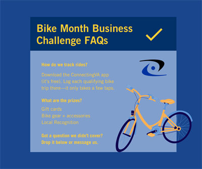The event will be held May 1st through the 31st. Participants log bike trips throughout Bike Month on Virginia's ConnectingVA app, which promotes cleaner commuting, to participate!